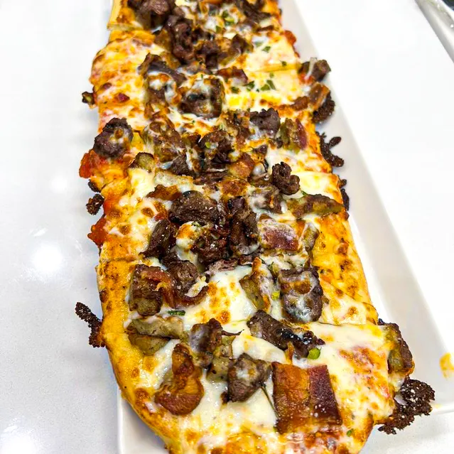 Roasted garlic tomato sauce, mozzarella cheese, filet mignon, bacon, sausage.