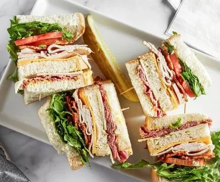 White bread, mayo, mustard, peppercorn aioli, roast beef, turkey, bacon, swiss cheese, American cheddar, tomatoes, arugula