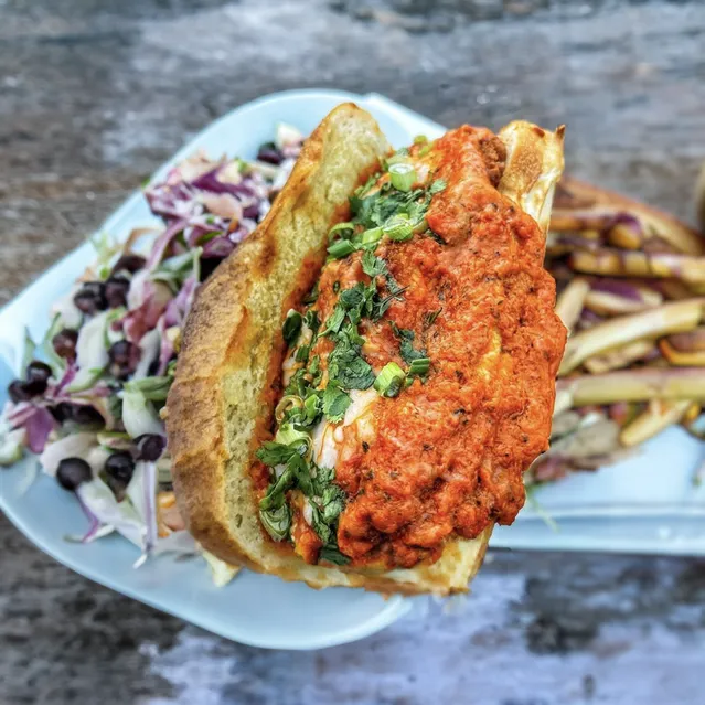 Panko-breaded antibiotic free chicken, house made roasted garlic marinara sauce, melted mozzarella sauce, topped with parmesan cheese, cilantro and green onions on a hoagie roll